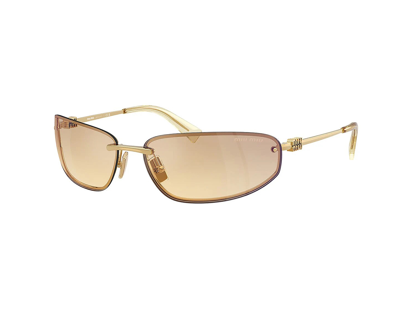 This pair of Miu Miu sunglasses comes in a gold frame.