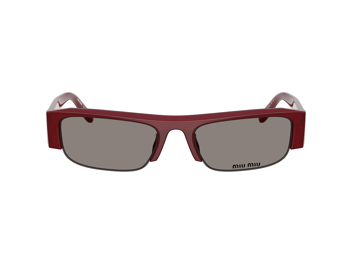 This pair of Miu Miu sunglasses comes in a burgundy frame.